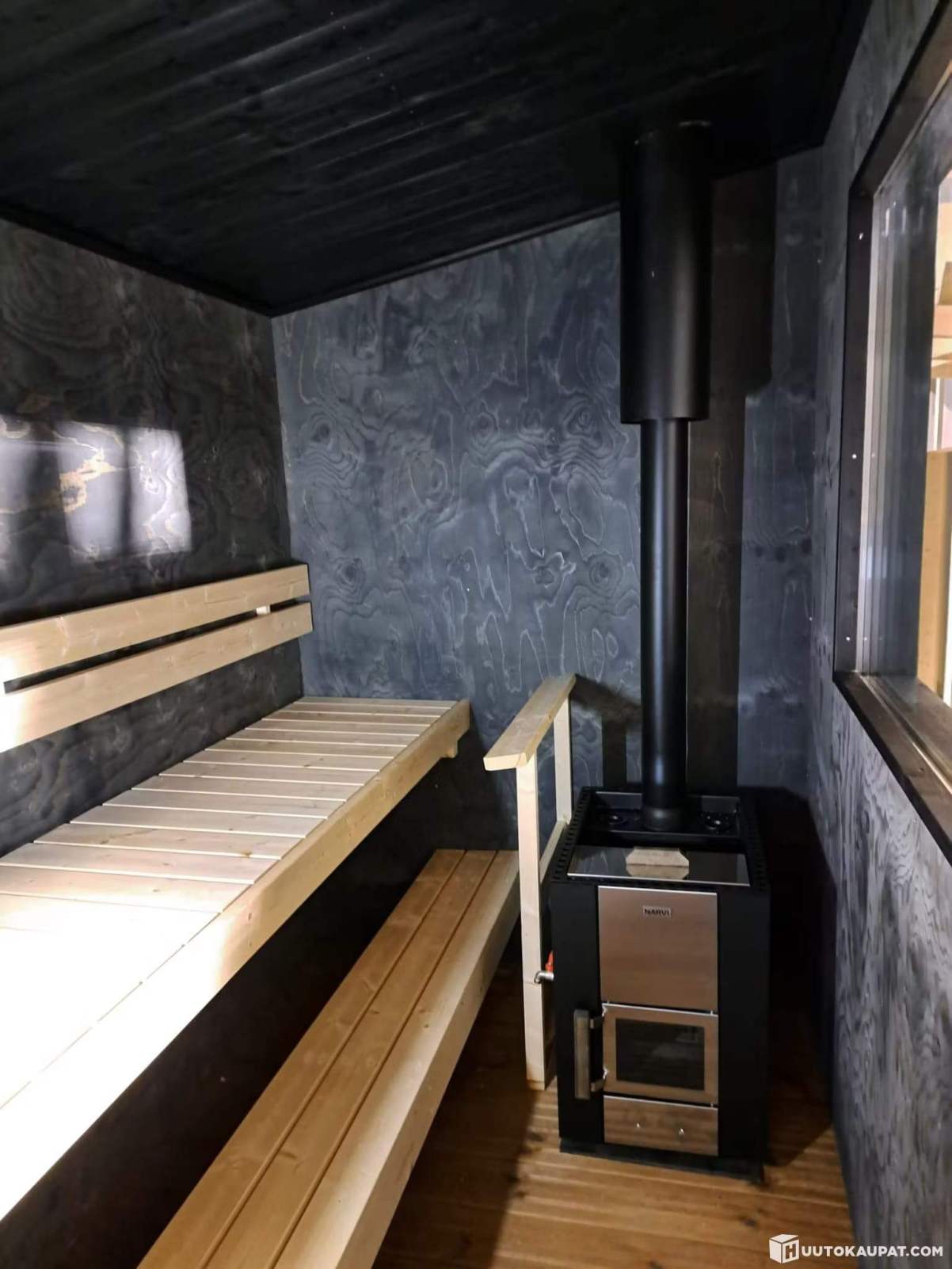 Sauna valmistetaan huolella kestävistä materiaaleista ja viimeistellään käyttövalmiiksi – sinun ei tarvitse tehdä muuta kuin tuoda paikalleen ja nauttia löylyistä.